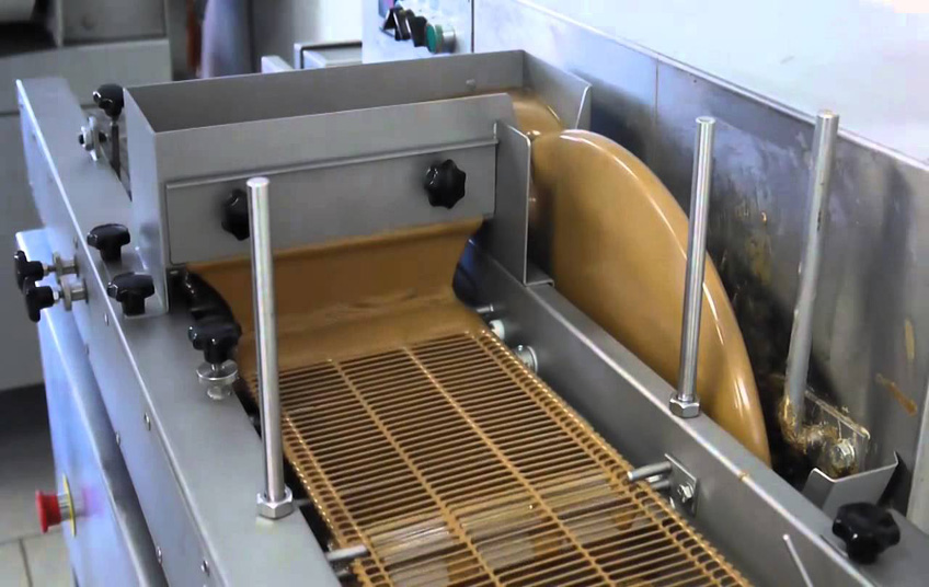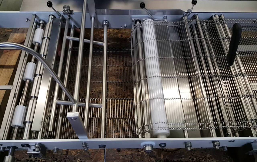 Enrober Belts are made of stainless steel wire of spring wire. Wire diameters varies from 0,9 until 2,8 mm. Pitches from 4 mm until 19,05 mm, and belt widths from 10 mm until 3 meter. Enrober Belts are normally driven by toothed sprockets, made of (stainless) steel or plastic. Mainly Enrober Belts is used in Food Industries.